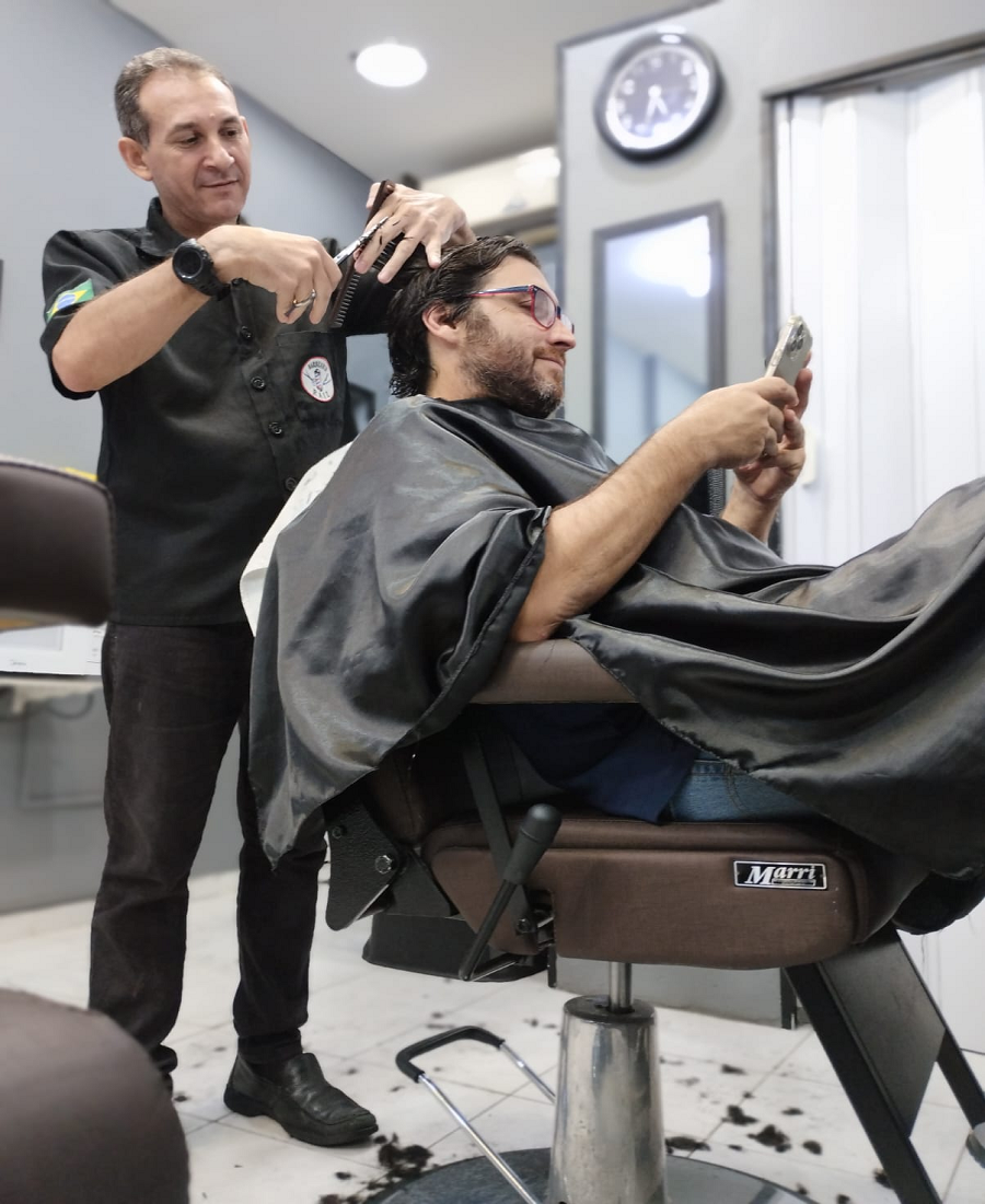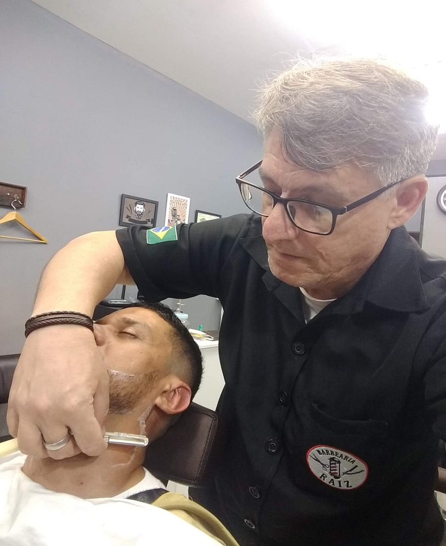 Tive a ideia de montar a Barbearia Raíz RJ junto com Luiz e chamamos o Caio para vir trabalhar com a gente.
